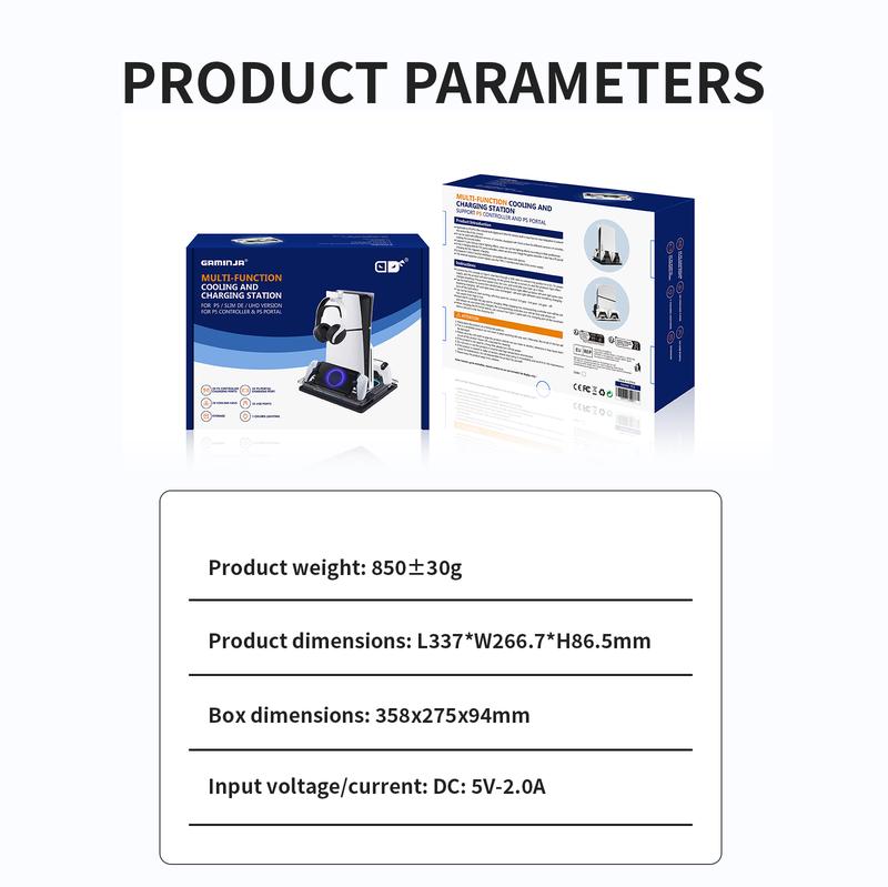 The GAMINJA Cooling Station is a versatile accessory for PS5 Digital/Disc. It includes a cooling fan and a headset holder, improving your gaming experience. This charging station keeps your console cool during extended sessions. Ideal for gamers aiming to optimize their setup.